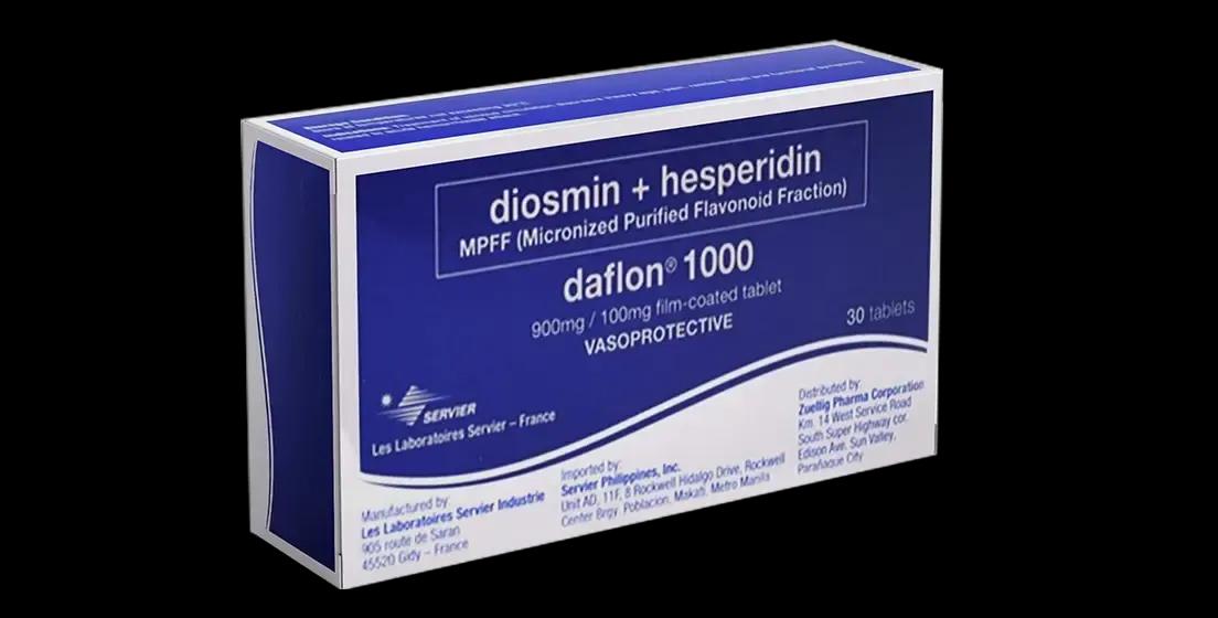 KATANGIAN: Vascular protector at venotonic. Ang Diosmin + Hesperidin (Daflon®) 1000 ay kumikilos sa pabalik na mekanismo ng ugat: binabawasan nito ang pagluwag at pag-ipon ng likido sa ugat; sa maliliit na ugat, binabalik sa normal ang pagiging matagusin at tibay ng mga maliliit na ugat.